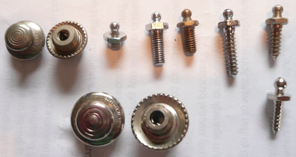 From time to time, the SDF has investigated other unobtainable parts, including the small Tenax fasteners found on the sidescreen TRs – the larger Tenax are obtainable and are used nowadays on Morgans (well, of course!). The Tenax fastening consists of a peg, of which there are three variants to permit it to screw into wood and into two types of metal; the one which screws into the windshield surround has to have an especially short thread so as not to crack the screen. The mating part is fitted through a hole cut into the material of hood and tonneau, is in two parts – a part to grip onto the peg and a ring to lock it into the material. This item is particularly complex, and this is the part which always gets damaged by those who don’t know how to fit it over its peg. Despite considerable efforts, the SDF has failed to find a company prepared to produce this rather complex part in comparatively small quantities.